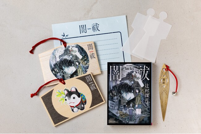 物語の中で闇を寄せ付けない特別な力を持つ竹をモチーフにした真鍮しおりや、山田章博さんによる文庫装画を使った絵馬、あなたが体験した闇エピソードを書いてお祓いできる便箋、身の穢れを祓える形代など、豪華4点セット。
