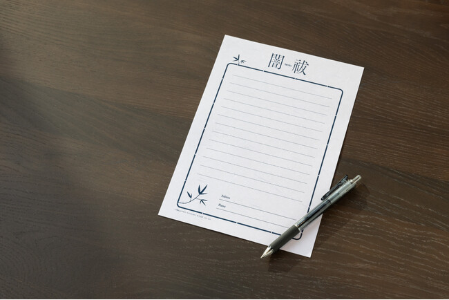お祓いしてほしいエピソードを便箋に書き、同封の返信用封筒に84円切手を貼付の上、ご返送ください。いただいた便箋は、武蔵野坐令和神社にてお祓いののち、お焚き上げします。