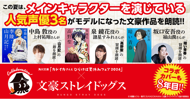 KADOKAWA(本社:千代田区富士見)では、角川文庫の夏のフェア「カドイカさんとひらけば夏休みフェア2024」とアニメ「文豪ストレイドッグス」のコラボ企画を実施します。
