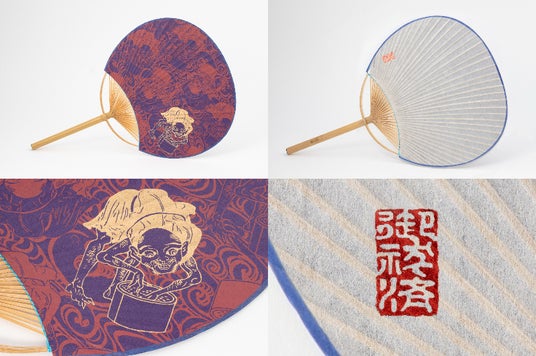 江戸時代から著名人にも愛用されている【はいばらうちわ】に「小豆洗い」をデザイン。職人が手作業で仕立てた逸品。