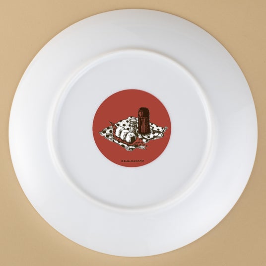 カマノレイコさんによる繊細なペン画をティータイムにぴったりなプレートに仕立てました。大きなリンゴの木のうえで三匹が思い思いにくつろぐ姿に癒されます。