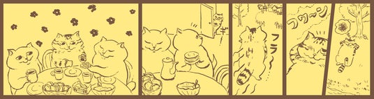 普通の生活の素晴らしさを、猫や動物の姿を通して描いています。