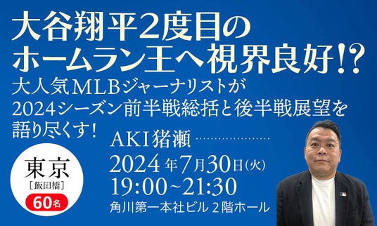 株式会社KADOKAWA(本社:東京都千代田区、取締役 代表執行役社長 CEO:夏野剛)は 2024年7月30日(火)に、MLBジャーナリスト・AKI猪瀬氏によるトークイベントを開催します。