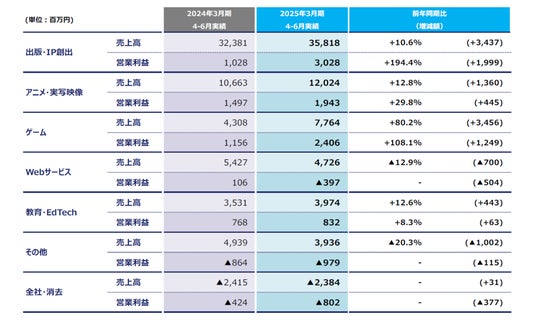 株式会社KADOKAWA(本社:東京都千代田区、取締役 代表執行役社長 CEO:夏野剛、東証プライム:9468)は、2024年8月14日、2025年3月期通期連結業績見通しおよび第1四半期決算を公表いたしました。
