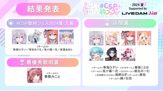 #CSP歌枠フェス2024夏 大賞は<チームH>隼海ひすい、常世めぐる、兎十碼一花、咲真あきら!