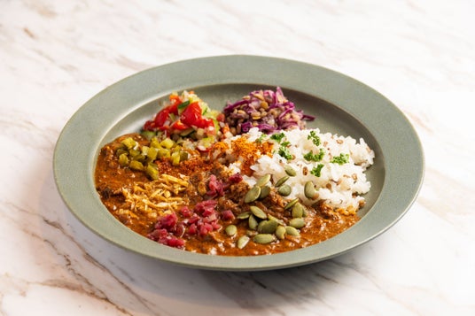 (右写真)トッピング:パンプキンシード(秋限定)、カリカリ梅、フライドオニオン、ハラペーニョ、角川食堂 辛増ガラムマサラ