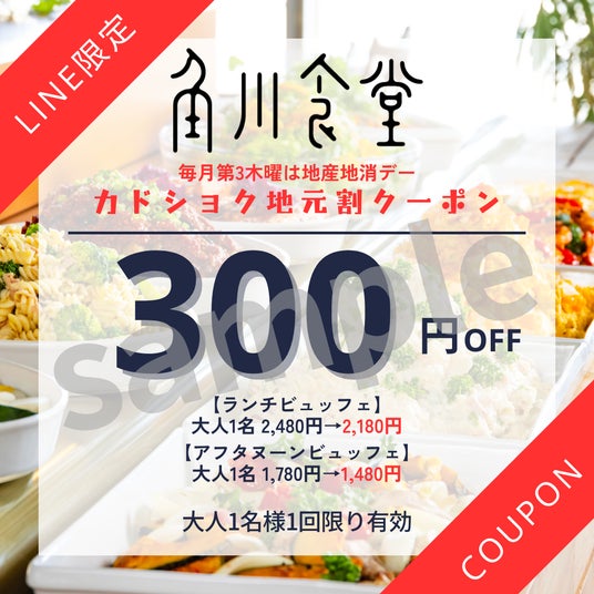 割引額 ビュッフェ大人料金から300円引き(終日)