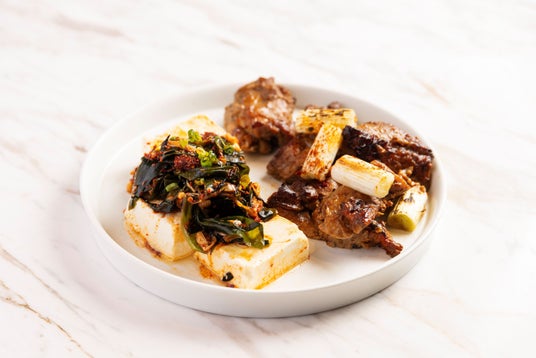 ピリ辛おつまみ冷奴、所沢産長ネギの焼き鳥ねぎま風