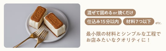 バスクチーズケーキやタルトなどのケーキから、クッキー、スコーン、カヌレなどの焼き菓子まで、大好きなカフェスイーツが手間なし・失敗なしで完成します。