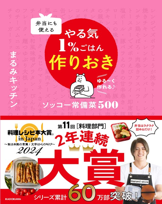 株式会社KADOKAWA(本社:東京都千代田区、以下KADOKAWA)発行の『弁当にも使える やる気1%ごはん作りおき ソッコー常備菜500』(著者:まるみキッチン)が、2024年9月10日(火)に行われた「第11回料理レシピ本大賞 in Japan」授賞式にて、料理部門 大賞を受賞しました。