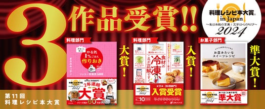 さらに、『ニチレイフーズの広報さんに教わる 食材の冷凍、これが正解です!』(監修:株式会社ニチレイフーズ)が料理部門 入賞、『ふつうの材料だけで作る お店みたいなスイーツレシピ』(著者:megu'cafe)がお菓子部門 準大賞と、KADOKAWAからは計3作品受賞の快挙となりました。