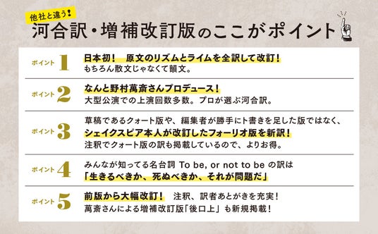 英国人と同じように味わえる、シェイクスピア最新訳の決定版!」(野村萬斎)