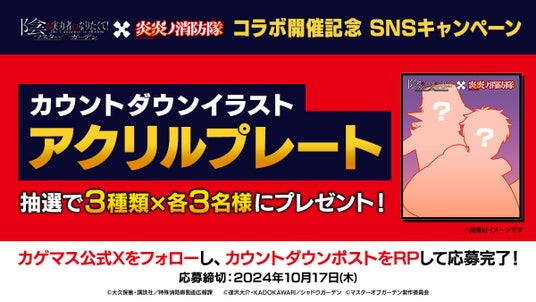 さらに、カウントダウン画像を使用したアクリルプレートがそれぞれ3名様に当たるキャンペーンも実施します。カゲマス公式Xをフォロー+リポストして応募しましょう!