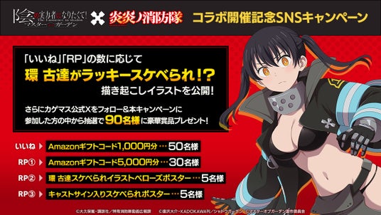 株式会社KADOKAWA(本社:東京都千代田区、取締役 代表執行役社長 CEO:夏野剛、以下 KADOKAWA)と株式会社Aiming(本社:東京都渋谷区、代表取締役社長:椎葉忠志)は、3DアニメーションRPG『陰の実力者になりたくて!マスターオブガーデン』(以下、「カゲマス」)において、TVアニメ『炎炎ノ消防隊』とのコラボイベントを開催することをお知らせいたします。
