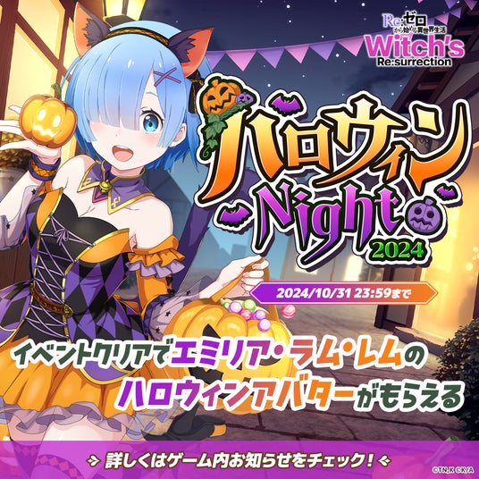 株式会社KADOKAWA(本社:東京都千代田区、取締役 代表執行役社長 CEO:夏野剛、以下 KADOKAWA)は、本日10月17日より『Re:ゼロから始める異世界生活 Witch’s Re:surrection』(略称:『リゼウィチ』)にて、期間限定イベント「ハロウィンNight2024」を開始いたしました。