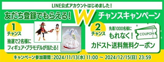 カドスト公式LINEを友だち追加すると、抽選で2名様にフィギュア・プラモデルの豪華賞品をプレゼントします。