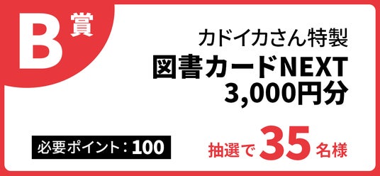 「カドワン」対象作品を書店で購入してKADOKAWAアプリで応募すると抽選で100名様に、図書カードNEXTやカドイカさん特製グッズが当たるプレゼントキャンペーンも実施します。