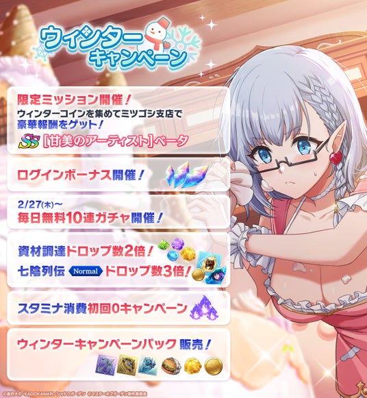 - ウィンターキャンペーン開催! 期間中、[甘美のアーティスト]ベータや幻魔石が手に入るチャンス!