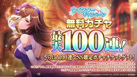 株式会社KADOKAWA(本社:東京都千代田区、取締役 代表執行役社長 CEO:夏野剛、以下 KADOKAWA)と株式会社Aiming(本社:東京都渋谷区、代表取締役社長:椎葉忠志)は、TVアニメ『陰の実力者になりたくて!』の3DアニメーションRPG『陰の実力者になりたくて!マスターオブガーデン』(以下、「カゲマス」)において、ウィンターキャンペーンを開催することをお知らせいたします。