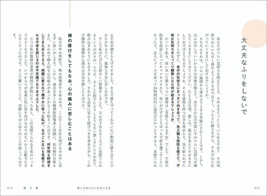 韓国の禅僧である著者が、あるテレビの取材をきっかけに謂れのない誹謗中傷を受けることに……。この事件に思いのほか傷ついた経験から、著者は改めて自身の内面と対話し、自分を抱きしめる方法を見つけていきます。本書はその過程をつづったエッセイと、禅にまつわる偉人や著者の100以上の名言を掲載しています。