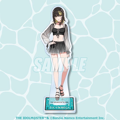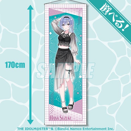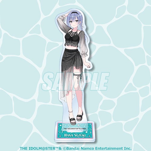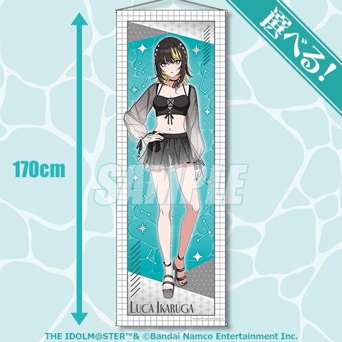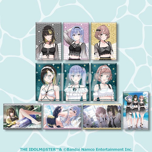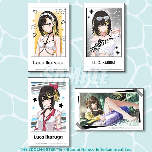 商品は水着衣装に身を包み、ユニット別スタイルブックの表紙にもなった「斑鳩ルカ」「鈴木羽那」「郁田はるき」の特大タペストリーやアクリルスタンドのほか、バッグの中身ページで紹介されたアイドルたちが持ち歩いている愛用品のイラストを使用した3個セットのアクリルミニチャーム、ゲーム内で使用された歴代の水着イラストやカードイラストを使用したミニブロマイドセットやスクエア缶バッジ等、オリジナルグッズを多数展開しております。