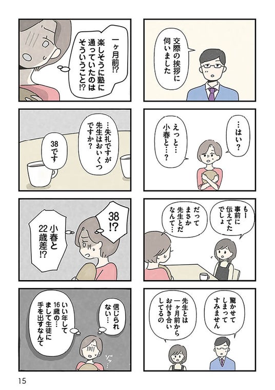 佐倉真美は、高校1年生の小春を女手一つで育てている。ある日、小春の成績が落ちていることに愕然とした真美は、塾を探すことに。見つけた塾長の森先生はとても真面目そうな人で、熱心に小春に勉強を教えてくれているそうだ。おかげで小春の成績も上がっていき、安心していた。ところがある日、小春が「ママに会わせたい人がいる」と言い、交際相手として連れてきたのは森先生だった……。