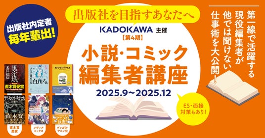 株式会社KADOKAWA(本社:東京都千代田区、取締役 代表執行役社長 CEO:夏野剛)は、昨年度に引き続き、出版社を目指す方を対象とした「小説・コミック編集者講座(第4期)」を2025年9月5日(金)より開催します。