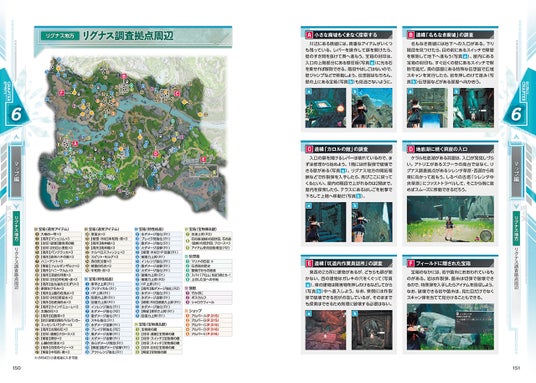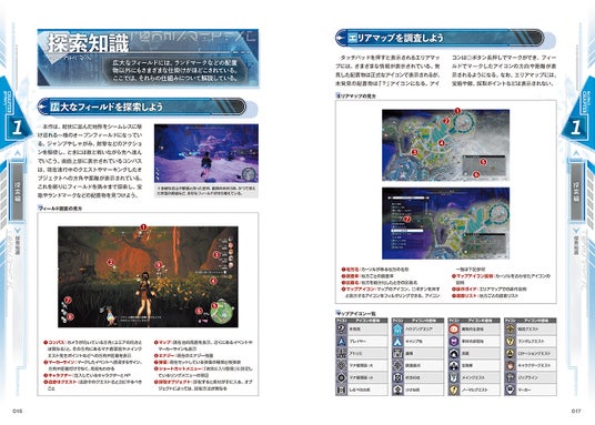 採取情報や宝箱、伝想器の配置場所や遺構探索指南など、フィールド調査にかかわる要素を地方ごとに掲載。