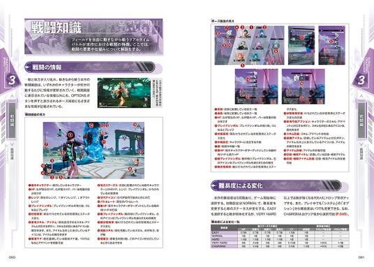 習得スキルや能力を活かした戦い方をキャラクターごとに紹介。探索や戦闘に役立つテクニックも収録。