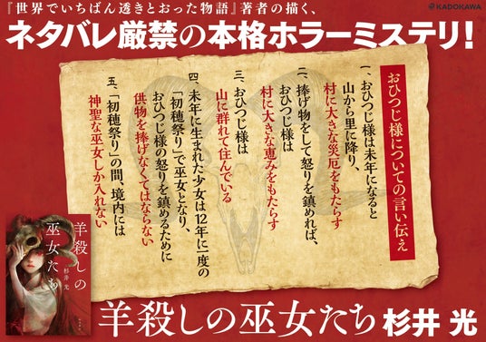 株式会社KADOKAWA(本社:東京都千代田区)は杉井 光氏の最新長編小説『羊殺しの巫女たち』を2025年8月27日(水)に発売しました。また、出版を記念して、紀伊國屋書店新宿本店とコーチャンフォー若葉台店にてイベントを開催します。