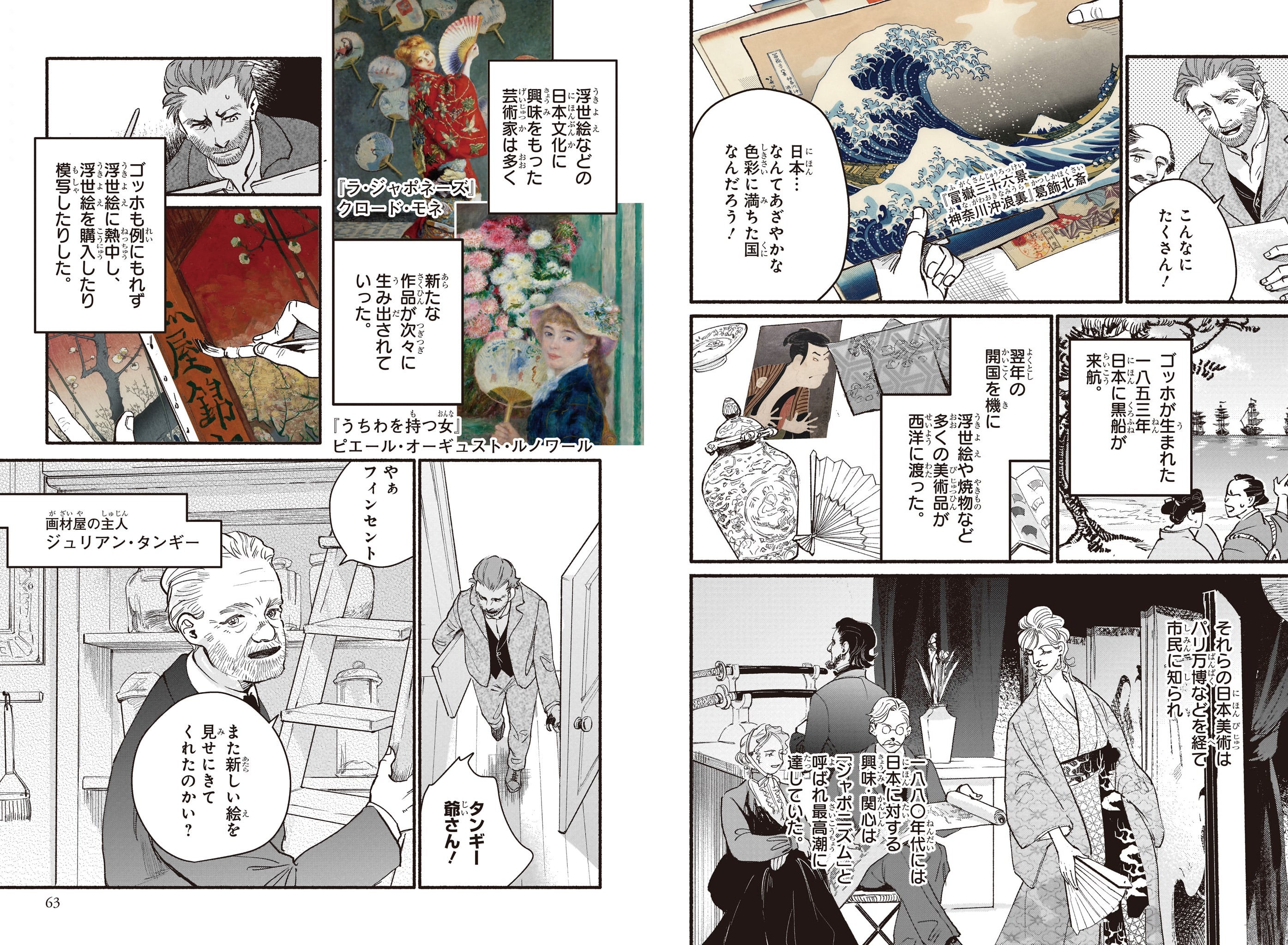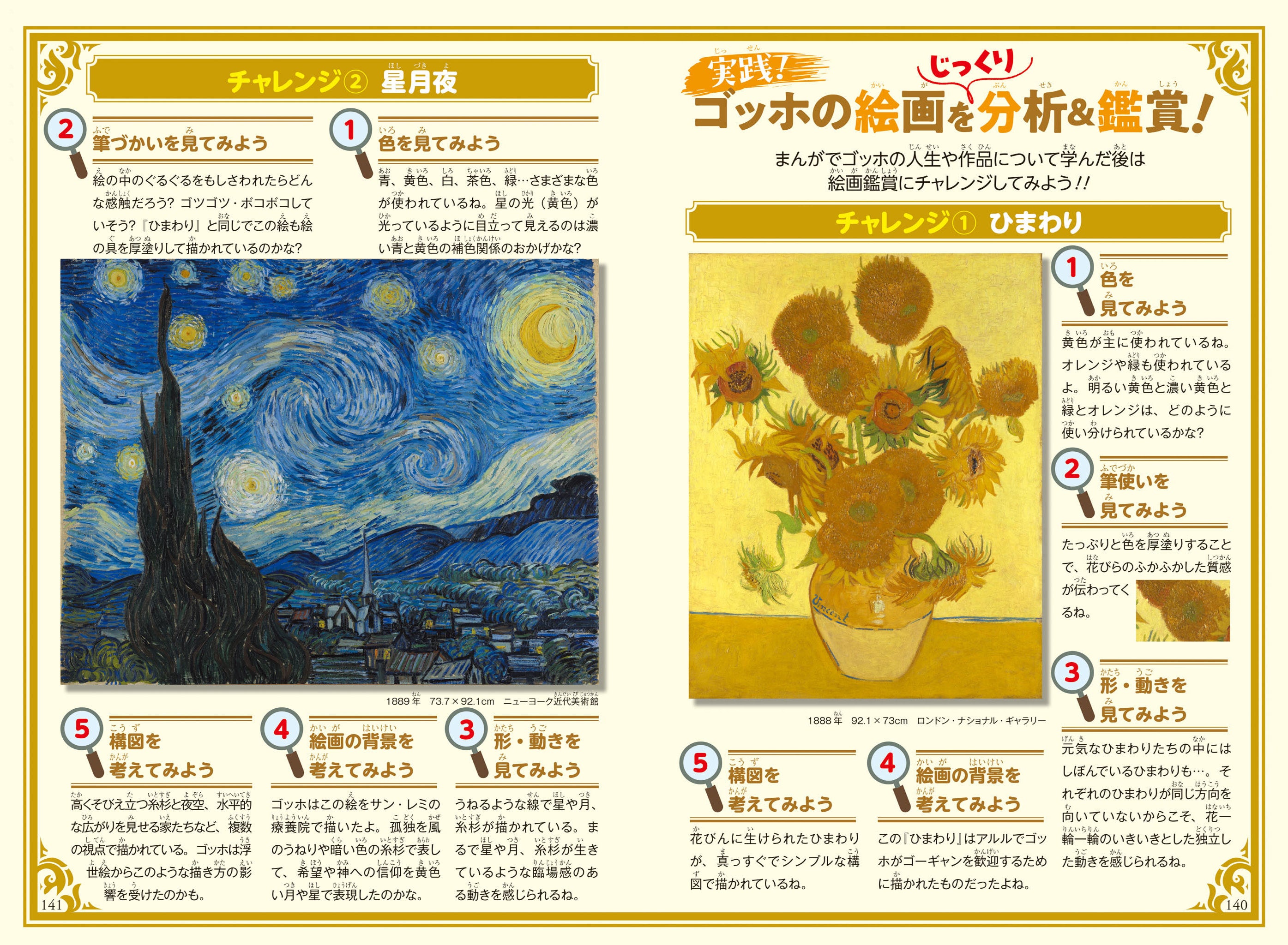 ゴッホの名作をはじめとする約80点の実際の絵画をカラーで収録。まんがのストーリーとともに、当時のゴッホの想いや時代背景を踏まえてアートを鑑賞できる、学習まんがならではの“芸術体験”を提供します。