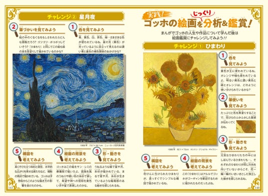 まんが本編に加え、絵画の見方を学べる特集記事や、日本国内で鑑賞できるゴッホ作品の紹介記事もカラーで掲載。この一冊で、アートがぐっと身近に感じられる内容になっています。