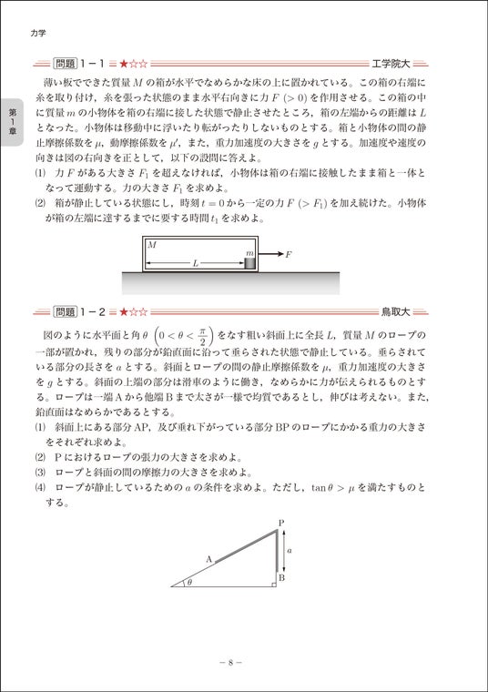 [波動・電磁気・原子篇]と合わせ、厳選された計200題を収録(本書には88題収録)。重要分野や受験生が苦手としやすい分野には特に多くの問題を配置し、重点的に対策できるよう設計されています。