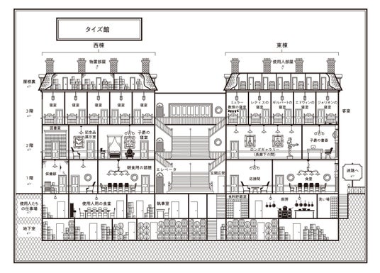 本書の冒頭で、ハレー彗星の館=タイズ館の見取り図が掲載されています。そちらに関してもご紹介しましょう。