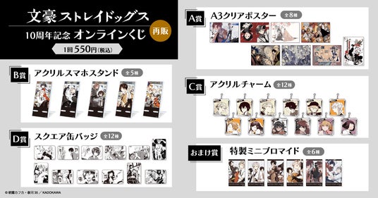 <【再販】文豪ストレイドッグス 10周年記念オンラインくじ 概要>