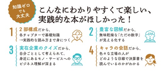・企業の財務状況がグラフや登場人物の会話によって分かりやすくまとめられていて、理解しやすい。(20代女性)