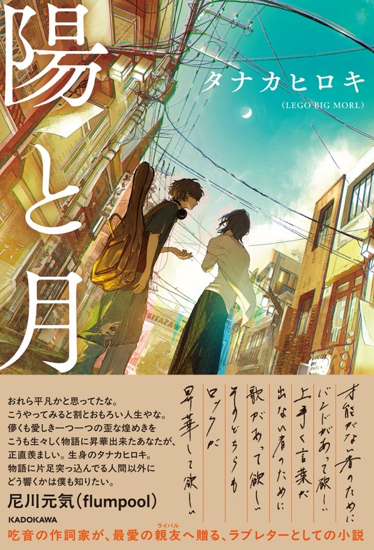 株式会社KADOKAWA(本社:東京都千代田区、取締役 代表執行役社長 CEO:夏野剛)は、2026年5月20日(水)発売の、ロックバンド・LEGO BIG MORL(レゴ ビッグ モール)のギタリストであり作詞も手がける、タナカヒロキ氏の初小説『陽と月』に、親交の深いロックバンド・flumpool(フランプール)のベーシスト・尼川元気氏の帯コメントが掲載されることをお知らせします。